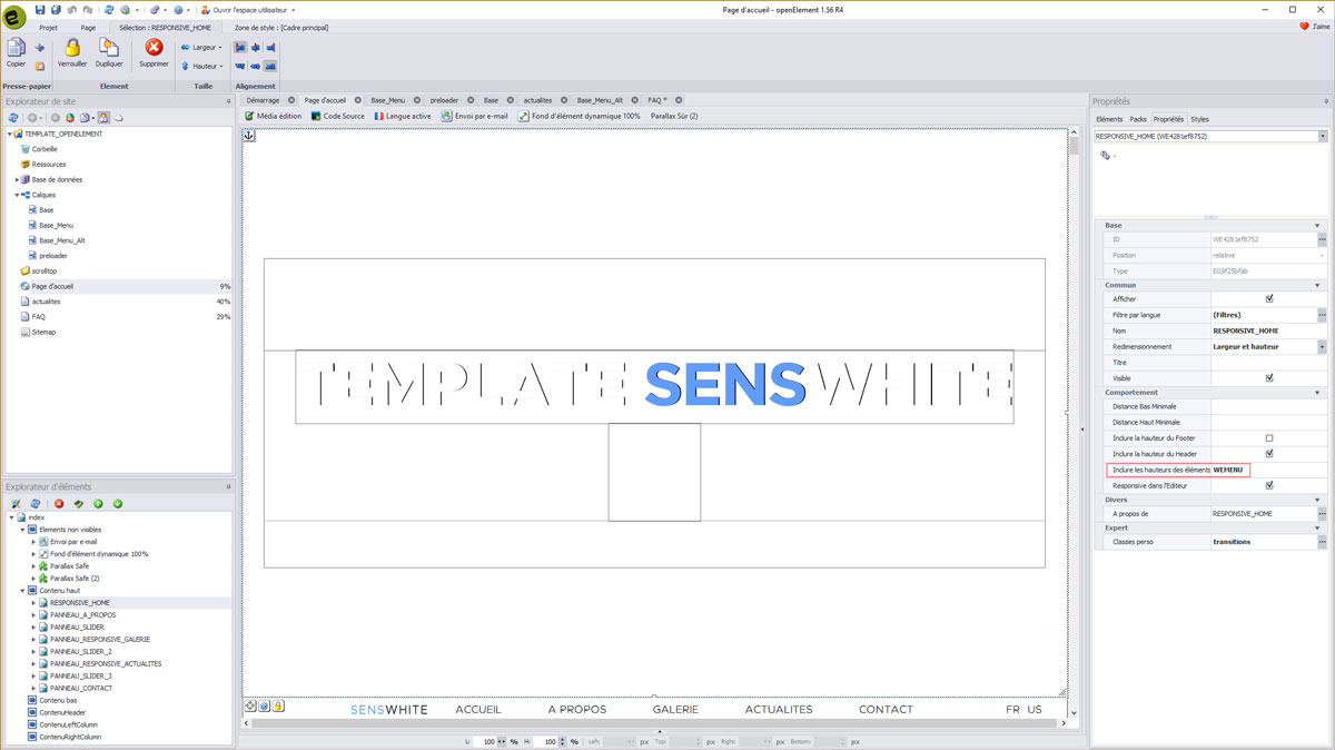As you can see, the SENSWHITE template includes all new elements as well as specially developed and optimally integrated code in Openelement.